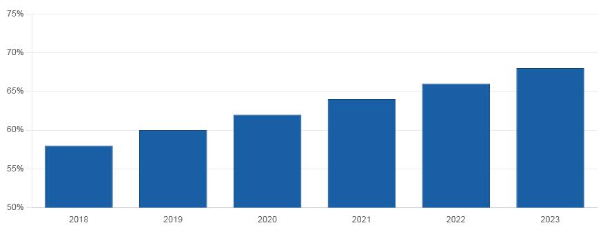 Figure 1: Tetra Pak's estimated global market share in liquid food aseptic carton packaging, 2018-2023. Source: Tetra Pak Industry Reports and Packaging Digest.